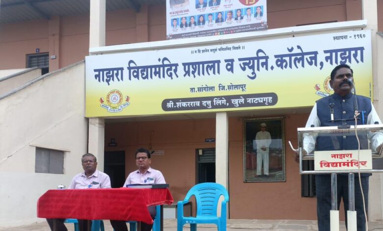नाझरा(वार्ताहर):- नाझरा विद्यामंदिर प्रशाला व ज्युनिअर कॉलेजमध्ये संविधान जागर हा कार्यक्रम संपन्न झाला.न्यू इंग्लिश स्कूल सांगोला येथील पर्यवेक्षक तानाजी सूर्यगंध यांनी संविधान जागर हा कार्यक्रम सादर केला.यावेळी व्यासपीठावर मुख्याध्यापक बी.एस.माने,पर्यवेक्षक मधुकर धायगुडे उपस्थित होते.