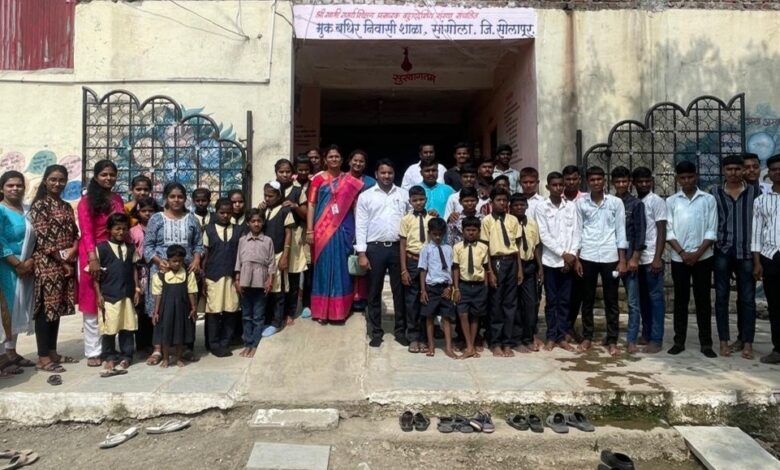 सांगोला येथील श्री स्वामी समर्थ शिक्षण प्रसारक बहुउद्देशीय संस्था संचलित मूकबधीर निवासी शाळेस महाविद्यायातील प्राध्यापक व बीकॉम भाग.3 मधील विद्यार्थ्यांनी भेट देऊन, तेथील विद्यार्थ्यांना शैक्षणिक साहित्य व अल्पोपार वाटप केले. यावेळी शाळेतील शिक्षिका श्रीमती रेश्मा रमेश गजघाटे यांनी विद्यार्थी व प्राध्यापकांचे स्वागत केले. वाणिज्य विभाग प्रमुख डॉ. विद्या जाधव, प्रा. सचिन सुरवसे, प्रा. प्राप्ती लामगुंडे, प्रा.समाधान माने यांनी तेथील शिक्षकांशी विद्यार्थ्यांशी संवाद साधला.
