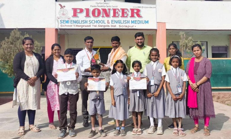या कार्यक्रमास प्रमुख पाहुणे म्हणून सांगोला अध्यक्ष सां.ता.शि.प्र. मंडळ मा.डाॅ. अनिकेत (भैय्या) देशमुख व मा.प्रा. प्रबुद्ध चंद्र झपके (सर), सांगोला युवा नेते मा .यशदादा साळुंखे -पाटील , शिवसेना जिल्हा अध्यक्ष मा. श्री सागर पाटील, भाजपा जिल्हाध्यक्ष मा. चेतनसिंह केदार, प्रगतशील बागायतदार मा. श्री बाळकृष्ण येलपले, माजी सरपंच यलमार मंगेवाडी मा. श्री दत्तात्रय बजरंग मासाळ, सरपंच मा. सौ प्रीती बापू जावीर इत्यादी मान्यवर उपस्थिती होते. या स्पर्धेत पायोनियर पब्लिक स्कूल सीबीएसई शाळेच्या विद्यार्थ्यांनी आपला डंका वाजवीत घवघवीत यश प्राप्त केले आहे.