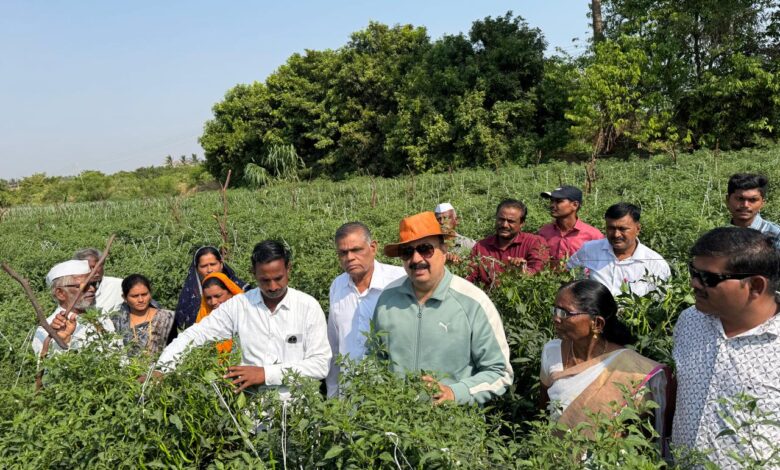 यावेळी पत्रकारांशी बोलताना मा. आम. दिपकआबा साळुंखे पाटील म्हणाले, शेतकऱ्यांच्या सुखा दुखात सहभागी होऊन त्यांना नेहमीच आधार देण्याची भूमिका साळुंखे पाटील कुटुंबियांनी घेतली आहे. ज्या – ज्या वेळी संकट आली त्या त्यावेळी प्रशासनाला बांधावर घेऊन जाण्याची भूमिका आम्ही एक बजावली आहे. राजकारणाच्या पलीकडे जाऊन येथील बळीराजांनी केलेल्या कष्टाला न्याय देण्याची मागणी नेहमीच केली आहे. याचाच एक भाग म्हणून, सांगोला तालुक्यात शिरभावी हे गाव शेती उत्पादनाच्या बाबतीत अग्रेसर गाव आहे. येथील शेतकरी जिद्द चिकाटी आणि कष्टाने प्रत्येक उत्पादनात अग्रेसर आहेत. यामध्येच बहाद्दर शेतकरी धनाजी साळुंखे यांनी 25 गुंठ्यामध्ये मिरची पिकाची लागवड केली आहे. आत्ता बहार सुरू झाला असून सध्या नऊ टन मिरची विक्री केली आहे. या पुढील काळात 15 ते 16 टन मिरची उत्पादन होईल. असे एकंदरीत 25 टन मिरची विक्री होईल असा अंदाज धनाजी साळुंखे यांनी वर्तवला आहे. यावरून राज्यात सर्वात विक्रमी उत्पादन घेणारा शेतकरी म्हणून या गावची ओळख निर्माण झाली असून, याबरोबरच माळावरची दगडाची जमीन फोडून सुपीक करून त्यामध्ये आंब्याची बाग लागवड केली आहे. सदरची बाग ही कोकण प्रमाणे फुलली आहे. सर्वसाधारण एकरी पाच लाख रुपये उत्पन्न घेत असल्याची माहिती कांतीलाल फडतरे यांनी दिले असून त्यांची 13 एकर आंब्याची बाग आहे याही शेतकऱ्याने विक्रमी उत्पादन घेतले असून, या बहाद्दर शेतकऱ्यांच्या कष्टाला आणि त्यांच्या मेहनतीला निश्चितपणाने शाबासकीची थाप मिळावी म्हणून, शेतकऱ्यांच्या बांधावर जाऊन सदर धनाजी साळुंखे व कांतीलाल फडतरे या दोन्ही कुटुंबीयांचा सत्कार करून त्यांना शुभेच्छा दिल्या आहेत. दरम्यान शेतीमालाला बाजारपेठ उपलब्ध होत नाही, यामध्ये दलाली करणारे व्यापारी आहेत त्यांच्याकडूनही नुकसान होत असून, शेतकऱ्यांच्या चांगल्या क्वालिटीच्या शेतीमालाला व्यापार पेठ मिळावी अशी मागणी येथील शेतकऱ्यांनी केली. यासह सांगोल्यात पिकणाऱ्या वेगवेगळ्या फळ पिकाला शासनाच्या अनुदान मिळावे अशी ही मागणी शेतकऱ्यांनी केली. त्यावर थेट कृषिमंत्री व फलोत्पादन मंत्री यांच्या समवेत चर्चा करून, शेतकऱ्यांच्या व्यथा मांडून शेतकऱ्यांना न्याय द्यावा अशी मागणी करणार असल्याचे मा. आम. दिपकआबा साळुंखे पाटील यांनी सांगितले.