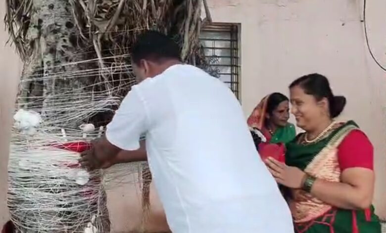 सांगोला :-वट सावित्रीच्या पौर्णिमेला विवाहित महिला वडाच्या झाडाची पूजा करून सात जन्मी हाच पती मिळो अशी प्रार्थना करतात, ही प्रथा आहे. परंतु सोनंद ता. सांगोला येथील धनंजय नारायण भिंगे या तरुणाने याने जन्मोजन्मी हीच पत्नी मिळावी म्हणून वडाच्या झाडाची पूजा करून पत्नीसह फेऱ्या मारून आईचे व गुरूंचे आशीर्वाद घेतले.