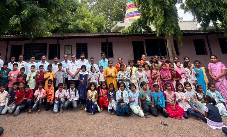मौजे नाझरे येथील श्रीधर कन्या प्रशाला व ज्युनि. कॉलेज येथे शैक्षणिक वर्ष 2025-26 च्या सुरुवातीला इयत्ता- 5 वी तसेच 6 वी ते 10 वी या वर्गामध्ये नव्याने प्रवेश घेणाऱ्या विद्यार्थ्यांचे प्रशालेच्या मुख्याध्यापिका श्रीम. यास्मिन मुल्ला मॅडम यांच्या हस्ते गुलाब पुष्प व खाऊ देऊन त्यांचे स्वागत करण्यात आले.
