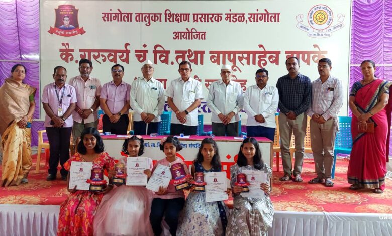 सांगोला(प्रतिनिधी):- सांगोला तालुका शिक्षण प्रसारक मंडळाचे संस्थापक अध्यक्ष थोर स्वातंत्र्य सेनानी, देशभक्त,कै.गुरुवर्य बापूसाहेब झपके यांच्या ४४ व्या स्मृतिदिनानिमित्त आयोजित तालुकास्तरीय वक्तृत्व स्पर्धेमध्ये इ.५ ते ७ वी गटामध्ये सांगोला विद्यामंदिर प्रशालेची संस्कृती भाग्यवंत बेहेरे हिने प्रथम क्रमांक मिळविला.तसेच श्रावणी दिलीप लवांडे सांगोला विद्यामंदिर प्रशाला सांगोला द्वितीय क्रमांक,ईश्वरी अशोक गायकवाड फॅबटेक पब्लिक स्कूल, सांगोला तृतीय क्रमांक,अनुराधा बाबासो फाटे श्री.छत्रपती. शिवाजी विद्यामंदिर धायटी चौथा क्रमांक,किशोरी शहाजी बाबर नाझरा विद्यामंदिर नाझरा पाचवा क्रमांक असे यश संपादन केले.हा निकाल परीक्षक सुनील जगताप यांनी जाहीर केला.या यशस्वी विद्यार्थ्यांचा रोख रक्कम, प्रशस्तीपत्रक व झपके कुटुंबियांकडून कै.गुरूवर्य बापूसाहेब झपके स्मृती चिन्ह देऊन प्रमुख पाहुणे, कार्यक्रमाचे अध्यक्ष व संस्थेचे अध्यक्ष प्रा.प्रबुद्धचंद्र झपके यांचे हस्ते सन्मान झाला.यावेळी व्यासपीठावर संस्था सचिव मल्लिकार्जुन घोंगडे,खजिनदार शंकरराव सावंत,परीक्षक सागर विश्वासे,निखिल बडवे,सुनील जगताप,पुष्पलता मिसाळ,नितीन गवळी,सुवर्णा काशीद पाटील,