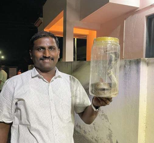 नागराजाने उडवली ठोंबरे – केदार परिवाराची भंबेरी; सर्पमित्र संदेश पलसे यांनी नागराजाला केले जेलबंद